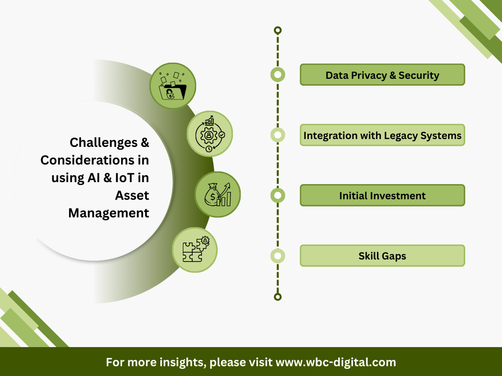 2. Integration with Legacy Systems: Integrating AI & IoT with existing legacy systems can be complex in asset management. To mitigate these issues, companies can use middleware or adaptable AI solutions that can seamlessly integrate with existing systems.
